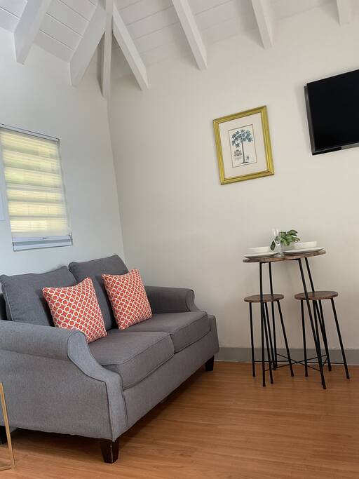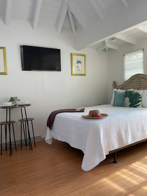 Soak yourself in breathtaking views at our cozy short-term rental perched in the mountains of beautiful St. Thomas, USVI. This bright, tranquil, and comfortable studio with beautiful high ceilings overlooks the Charlotte Amalie harbor, offering a peaceful retreat with unforgettable scenery. Relax on the open-style patio as you watch cruise ships sail, seaplanes land, and the sun rise or set over the Caribbean. Whether you’re seeking a romantic getaway or a quiet escape, The Northside Studio invites you to experience the very best of island living. 🔥 RELIABLE POWER WITH SOLAR + GENERATOR 🔥 Northside Studio is equipped with solar panels and a backup generator, so you can enjoy your stay with peace of mind and uninterrupted comfort—rain or shine, day or night! THE SPACE Key Features: ❂ Sleeps 2; Queen bed with cotton linens, extra pillows & blankets ❂ Studio apartment, open-concept layout ❂ 1 Bathroom with shower, stocked with essentials ❂ Fully equipped kitchen with Keurig coffee maker, cookware & condiments and BBQ Grill ❂ Covered outdoor patio with harbor, ocean, and mountain views ❂ Wi-Fi + dedicated workspace in a room with a door ❂ 43" HDTV with Roku, Chromecast, Netflix & Prime Video ❂ Air conditioning & split-type ductless heating system ❂ Beach essentials: towels, blanket, umbrella, snorkeling gear, and cooler ❂ Free private driveway parking (space #4) ❂ Self check-in with keypad lock GUEST TESTIMONIALS Daniel – Baltimore, Maryland – 5 Stars “Staying in this Airbnb in St. Thomas was an absolute highlight of our trip! The property was clean, beautifully maintained, and had everything we needed for a comfortable stay. The view from the porch was breathtaking perfect for morning coffee or evening wine while soaking in the beauty of the Virgin Islands.” Nasir – Roger, Arkansas – 5 Stars “The studio was absolutely fantastic! The space was beautifully decorated, spotlessly clean, and in a great location. Jenny was super responsive and made sure I had everything I needed. Highly recommend to anyone looking for a comfortable and relaxing stay!" STUDIO APARTMENT, OPEN-CONCEPT LAYOUT ❂ Queen bed with cotton linens, extra pillows & blankets ❂ Room-darkening shades ❂ Closet with hangers & clothing storage ❂ Iron available ❂ 43" HDTV with Roku/Chromecast/streaming BATHROOM ❂ Full bathroom with shower ❂ Hair dryer, complimentary shampoo, conditioner, body soap & shower gel ❂ Fresh towels, toilet paper & starter bath kit ❂ Cleaning products provided KITCHEN & DINING ❂ Fully stocked kitchen with refrigerator, freezer, microwave & gas stove ❂ Cooking basics: pots, pans, oil, salt & pepper ❂ Dishes & silverware, wine glasses, bowls, cups, and more ❂ Small appliances: Keurig coffee maker, toaster, blender, baking sheet ❂ Dining table for home-cooked meals OUTDOOR SPACE ❂ Covered shared patio with harbor, mountain & sea views ❂ BBQ grill (on request) ❂ Shared backyard (fully fenced) with outdoor furniture ❂ Beach essentials: towels, umbrella, blanket & snorkeling gear AMENITIES & EXTRAS ❂ Wi-Fi & dedicated workspace ❂ Pack ’n play/travel crib (on request) ❂ Air conditioning & heating (split-type ductless) ❂ Smoke & carbon monoxide alarms, fire extinguisher, first aid kit ❂ Exterior security camera at entrance for safety ❂ Long-term stays welcome (28+ days) ❂ Self check-in with keypad NEARBY ATTRACTIONS ❂ Magens Bay Beach – ~15 min / ~5 mi ❂ Coral World Ocean Park – ~10 min / ~4 mi ❂ Drake’s Seat Viewpoint – ~12 min / ~4 mi ❂ Charlotte Amalie Historic District – ~7 min / ~2 mi ❂ Blackbeard’s Castle – ~8 min / ~3 mi ❂ Lindquist Beach – ~18 min / ~6 mi ❂ Coki Beach & Snorkel Spot – ~10 min / ~3 mi ❂ Mahogany Run Golf Course – ~12 min / ~3 mi ❂ Phantasea Tropical Botanical Gardens – ~15 min / ~5 mi