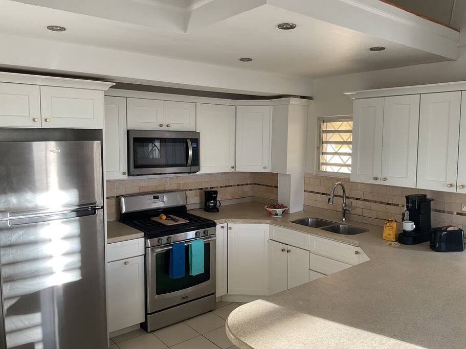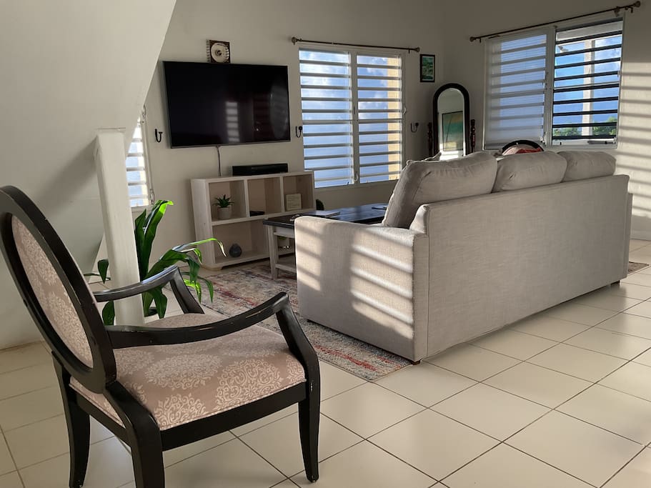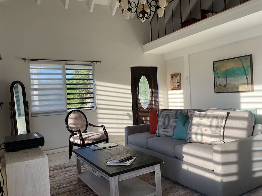 Welcome to your scenic St. Thomas retreat! Northside Quarters is a 3-bedroom, 2-bathroom home offering breathtaking bay, ocean, and mountain views. The home features beautiful high ceilings that create a bright, airy, and spacious feel throughout. Relax on the shared balcony or patio with comfortable seating and take in the sunrise over the harbor, watch cruise ships dock, seaplanes land, or boats glide across the water. Modern comforts and family-friendly amenities make this getaway perfect for groups or families looking for a memorable Caribbean escape. 🔥 RELIABLE POWER WITH SOLAR + GENERATOR 🔥 Northside Quarters is equipped with solar panels and a backup generator, so you can enjoy your stay with peace of mind and uninterrupted comfort—rain or shine, day or night! THE SPACE Key Features: ❂ Sleeps 8; 3 bedrooms: 1 queen, 1 double, 1 queen + air mattress ❂ 2 Bathrooms ❂ Fully equipped kitchen with Whirlpool stainless steel appliances and BBQ grill (on request) ❂ Shared balcony & patio with outdoor seating ❂ Wi-Fi, streaming services, and board games ❂ Beach essentials: towels, umbrella, blanket, snorkeling gear ❂ Free parking on premises ❂ Pack ’n play/travel crib available on request ❂ Family-friendly and kid-friendly amenities GUEST TESTIMONIALS Jennie – New York, United States – 5 stars "We had a wonderful stay at our Airbnb! The view was spectacular! We saw cruise ships coming & going. The house suited our needs perfectly. It was cool up in the mountains and close to the best banana daiquiris at the Mountain Top. The kitchen was well-equipped, including a BBQ, and there was even an herb garden for our recipes. The host was responsive and helpful, and Jenny greeted us at check-in with all the house details. Overall, a relaxing stay!" Yari – United States – 5 stars "I had an amazing time staying in this house with a beautiful view and an amazing owner to rely on." BEDROOMS Master Bedroom ❂ Queen bed with cotton linens, extra pillows & blankets ❂ Room-darkening shades ❂ Closet with hangers, dresser for ample storage ❂ Ceiling fan ❂ Smart TV with streaming access Second Bedroom ❂ Double bed with cotton linens, extra pillows & blankets ❂ Room-darkening shades ❂ Closet with hangers, dresser for ample storage ❂ Ceiling fan ❂ Smart TV with streaming access Third Bedroom ❂ Loft Bedroom ❂ Queen bed with cotton linens, extra pillows & blankets ❂ Air mattress for an additional guest ❂ Room-darkening shades ❂ Closet with hangers, dresser for ample storage ❂ Ceiling fan ❂ Portable air conditioning ❂ Smart TV with streaming access ❂An air mattress is available upon request for an additional fee. BATHROOMS ❂ 2 full bathrooms, stocked with essentials ❂ Bathtub, hot water, hair dryer ❂ Complimentary shampoo, conditioner, body soap ❂ Towels, toilet paper, starter bath kit KITCHEN & LOUNGE ❂ Fully equipped kitchen: refrigerator, gas stove, oven, microwave, freezer ❂ Cooking basics: pots, pans, oil, salt & pepper ❂ Dishes, silverware, coffee maker, toaster, blender, rice maker, hot water kettle ❂ Dining table for family meals ❂ Living room with comfortable seating, 55" HDTV, board games, and books OUTDOOR SPACE ❂ Shared patio and balcony with outdoor furniture ❂ BBQ grill (on request) and dining area ❂ Beach essentials: towels, umbrella, blanket, snorkeling gear ❂ Stunning views of bay, ocean, and mountains AMENITIES & EXTRAS ❂ Wi-Fi, dedicated workspace ❂ Paid washer & dryer in building ❂ Pack ’n play/travel crib (on request) ❂ Exterior security camera at parking lot entrance ❂ Smoke & carbon monoxide alarms, fire extinguisher, first aid kit ❂ Air conditioning: window AC unit, split-type ductless AC & heating, ceiling & portable fans ❂ Free parking on premises, free street parking ❂ Luggage drop-off allowed for early arrival/late departure ❂ Long-term stays welcome (28+ days) ❂ Self check-in with lockbox ❂ Cleaning available during stay NEARBY ATTRACTIONS ❂ Magens Bay Beach – ~15 min / ~5 mi ❂ Coral World Ocean Park – ~10 min / ~4 mi ❂ Drake’s Seat Viewpoint – ~12 min / ~4 mi ❂ Charlotte Amalie Historic District – ~7 min / ~2 mi ❂ Blackbeard’s Castle – ~8 min / ~3 mi ❂ Lindquist Beach – ~18 min / ~6 mi ❂ Coki Beach & Snorkel Spot – ~10 min / ~3 mi ❂ Mahogany Run Golf Course – ~12 min / ~3 mi ❂ Phantasea Tropical Botanical Gardens – ~15 min / ~5 mi